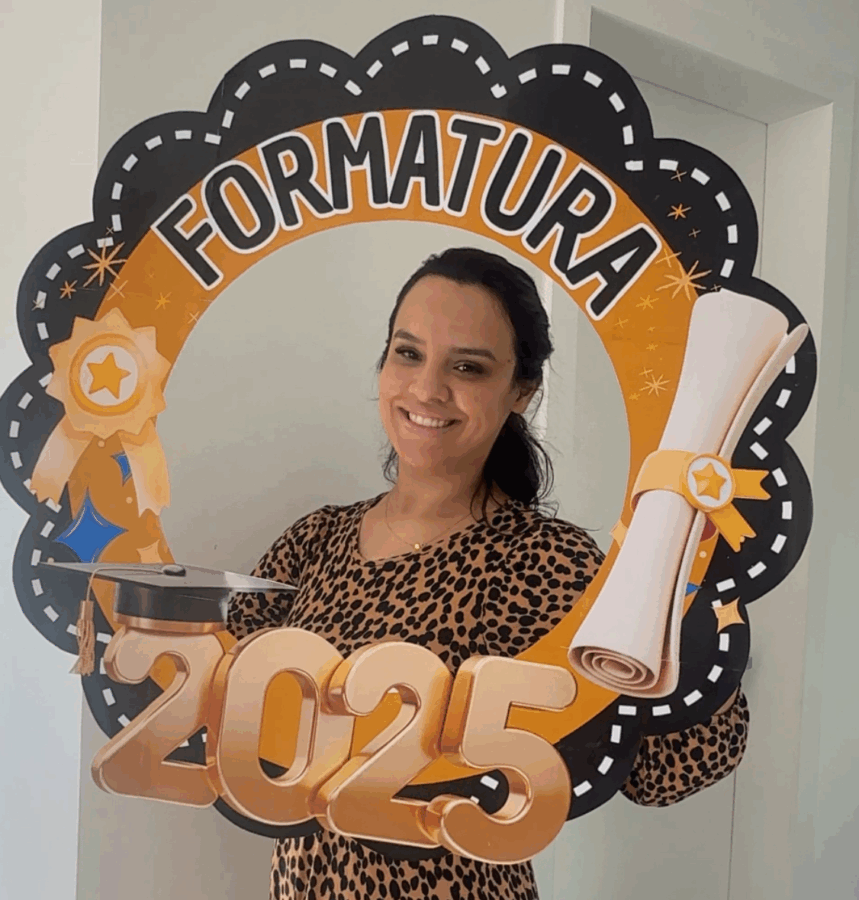 Ideal para usar em sessões de fotos, murais e cerimônias de encerramento escolar, o modelo é leve, resistente e garante cliques cheios de emoção e estilo.