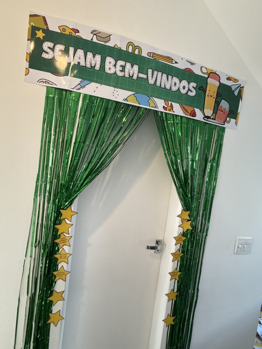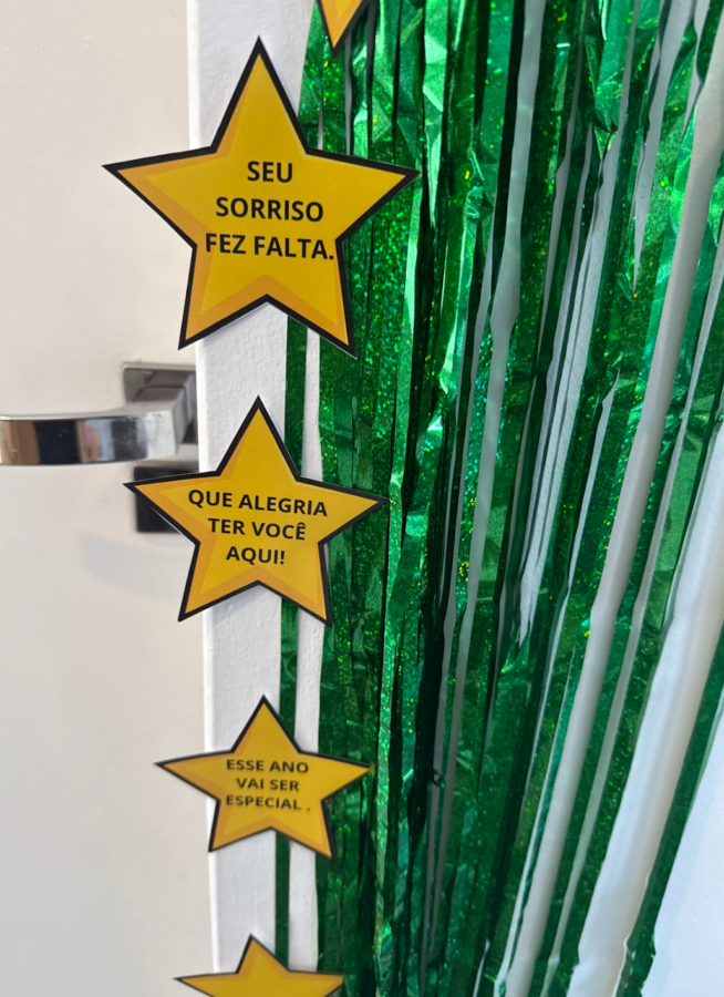 Um detalhe simples que transforma a chegada dos alunos em um momento especial 💚📚