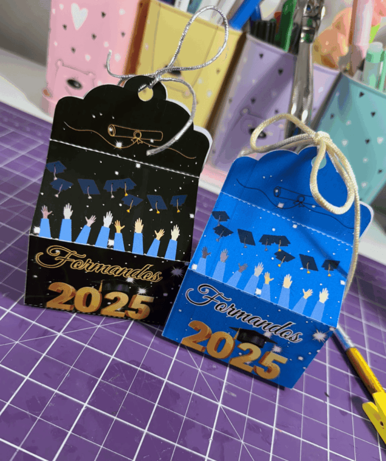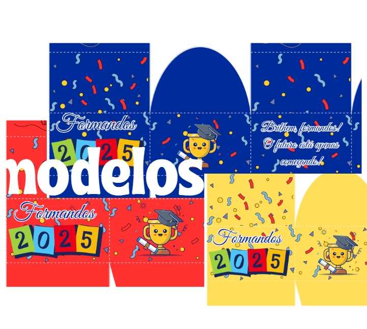 Você recebe duas estampas exclusivas com a mensagem Brilhem, formandos!