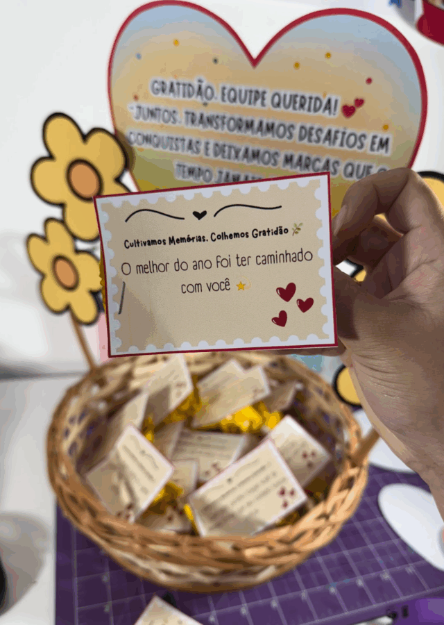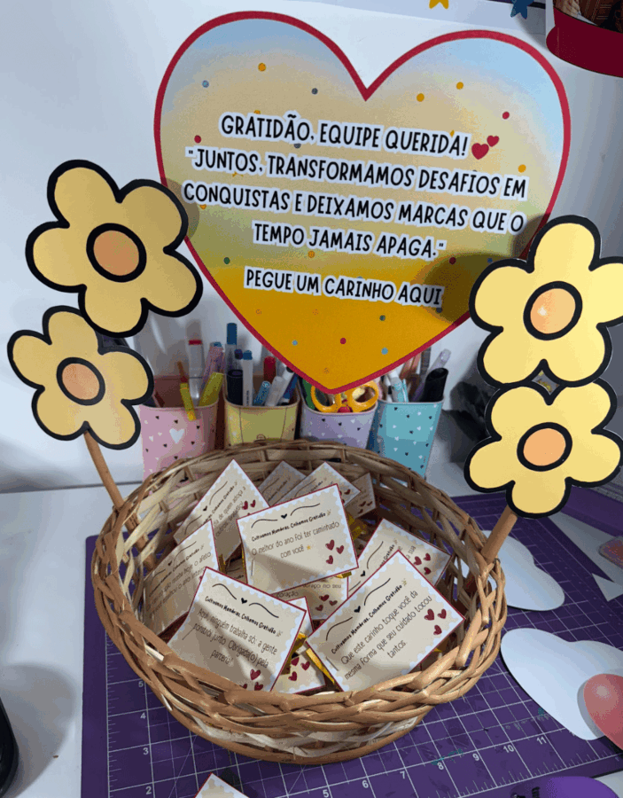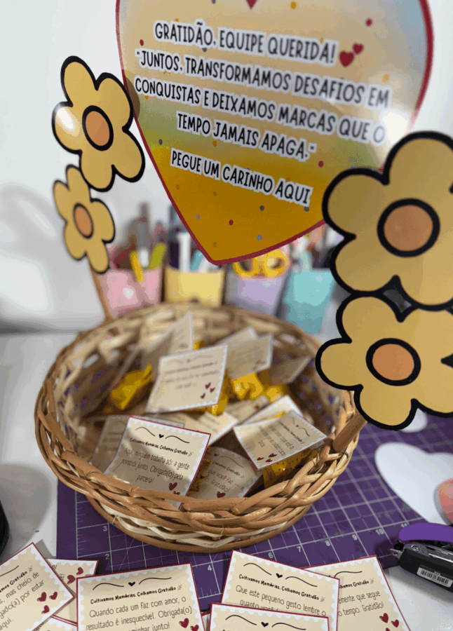 Este kit contém 81 frases diferentes para você recortar e aplicar em mimos, lembrancinhas e gestos de carinho para a equipe escolar.