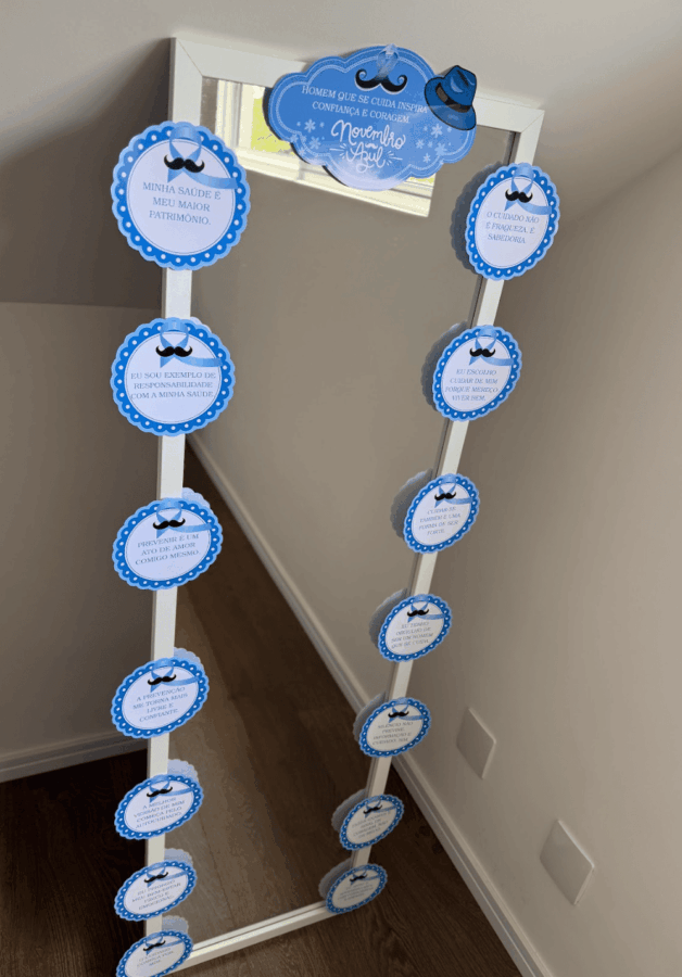 Transforme seu ambiente em um espaço de valorização, autocuidado e amor-próprio com o Espelho da Autoestima, uma decoração delicada e inspiradora especialmente criada para o novembro azul.