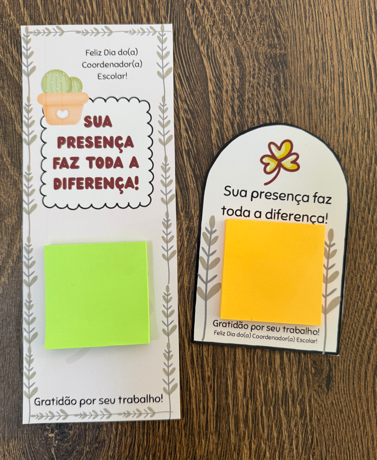 ✔ Suporte para bloquinho de anotações em dois modelos, com espaço para colar post-its.