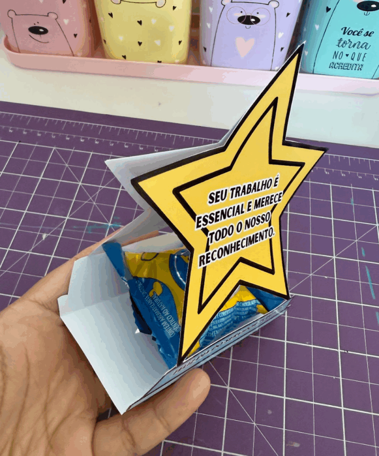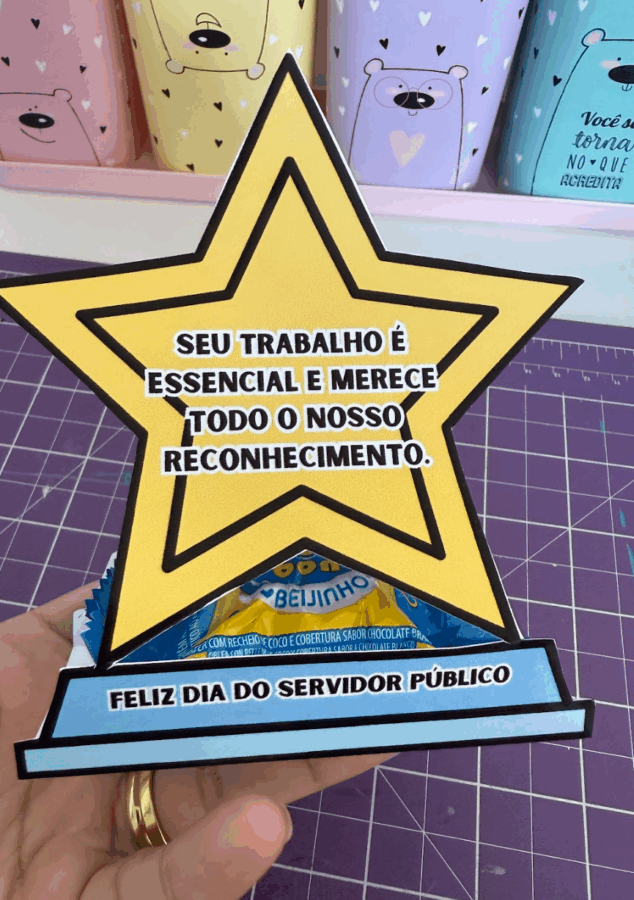 Esta lembrancinha em formato de estrela é perfeita para o Dia do Servidor Público. Pode ser usada como mimo, lembrança de mesa ou presente simbólico para agradecer aos profissionais que servem com dedicação e amor.