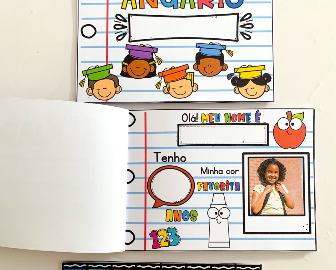 momentos únicos das crianças. Super colorido e vibrante, o material traz três opções de