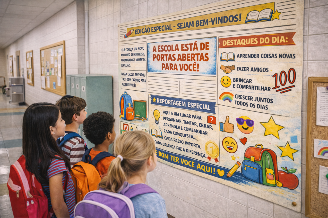 Com um visual inspirado em jornal, ele transforma a chegada de um novo ano letivo em uma verdadeira boa notícia, reforçando a importância de cada estudante, da amizade, do aprendizado e das conquistas do dia a dia.