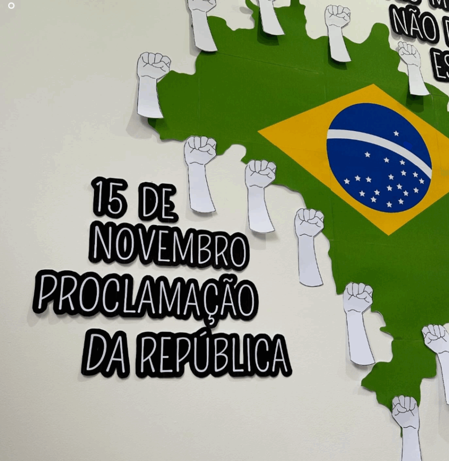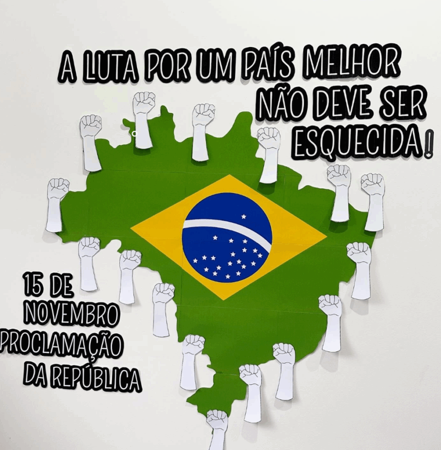 Ideal para murais escolares, projetos cívicos e atividades de História.