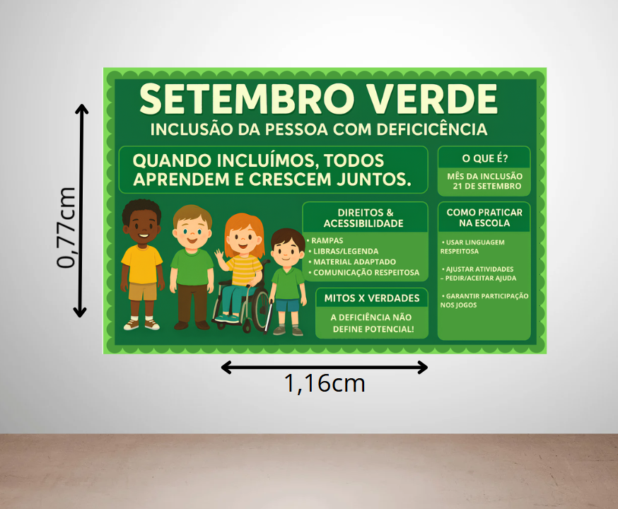 Ideal para salas de aula, murais escolares, eventos e campanhas de conscientização no Setembro Verde.