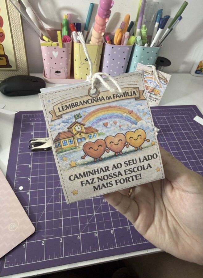 ✔ Design delicado e acolhedor, ideal para lembrancinhas, murais ou ações de aproximação com as famílias